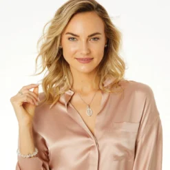 Dangling from two simple rings, this reversible pendant has a rope-framed crystal on one side and, in contrast, a modern, unframed oval on the reverse, punctuated by a dart of fine quality crystal. Crystal is said to symbolize healing and spirituality.